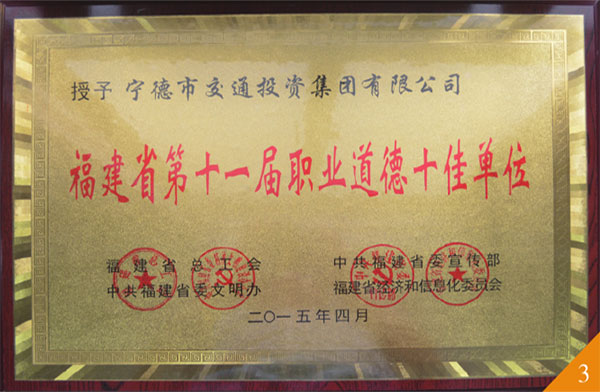市交投集團(tuán)榮獲福建省第十一屆職業(yè)道德十佳單位