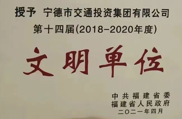 市交投集團(tuán)榮獲福建省第十四屆文明單位榮譽(yù)