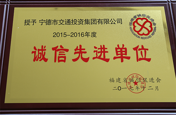 市交投集團(tuán)被福建省誠信促進(jìn)會(huì)授予2015-2016年度誠信先進(jìn)單位